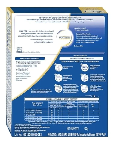 Nestle NAN PRO 1 Infant Formula with Probiotic, Stage 1, is specially designed to meet the nutritional needs of babies from birth to 6 months. Enriched with probiotics (Bifidus BL), it supports your baby’s digestive health and strengthens their immune system. This formula contains DHA and ARA, which are essential for brain and vision development, along with key vitamins and minerals such as iron, calcium, and zinc, to promote overall growth and well-being. With a gentle formulation that is easy on your baby’s tummy, Nestle NAN PRO 1 provides complete nutrition when breastfeeding is not an option, ensuring your little one receives the best start in life.
